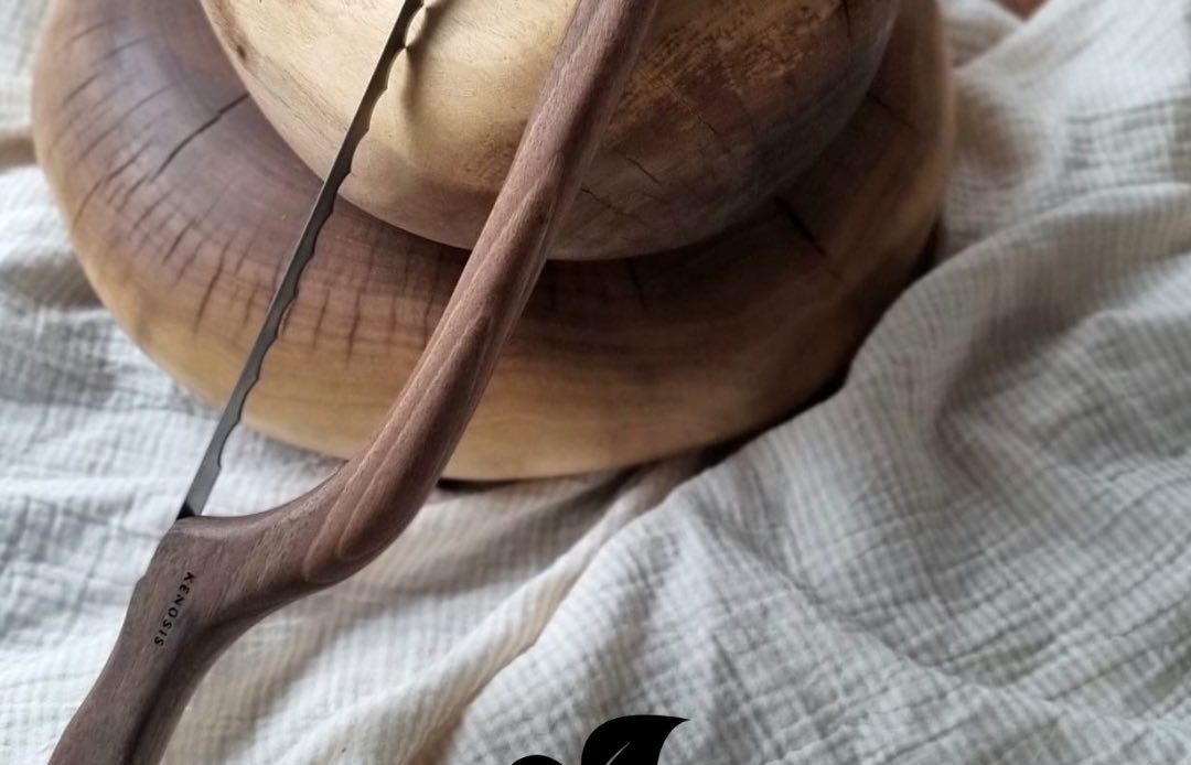 𝐁𝐨𝐰 𝐊𝐧𝐢𝐟𝐞 – Cuțit pentru pâine realizat din nuc românesc, cu lamă din oțel inoxidabil. Taie cu ușurință pâinea, iar mânerele sculptate manual invocă o căldură și un caracter aparte.